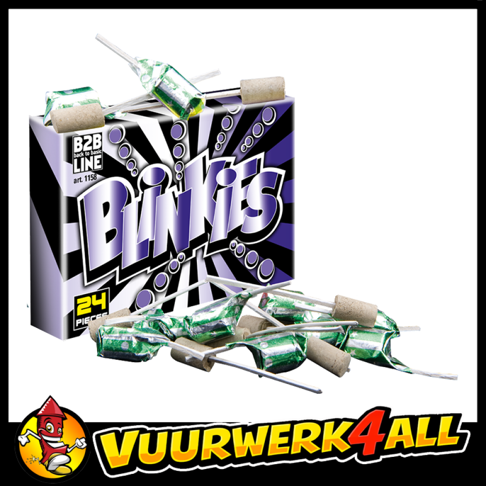 24 blinkies in een doosje, hiermee verlicht je de hele straat, 47 gram kruit totaal.