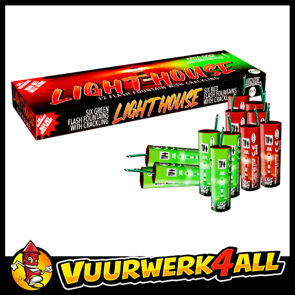 6 rode en 6 groene flash fonteinen met crackling.