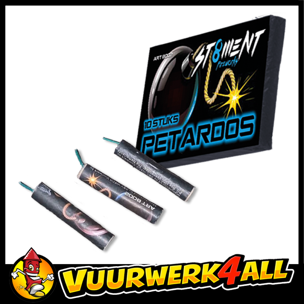 10 stuks echte knetterrotjes op traditionele manier verpakt per pakje van 10 stuks, mét label op het rotje.