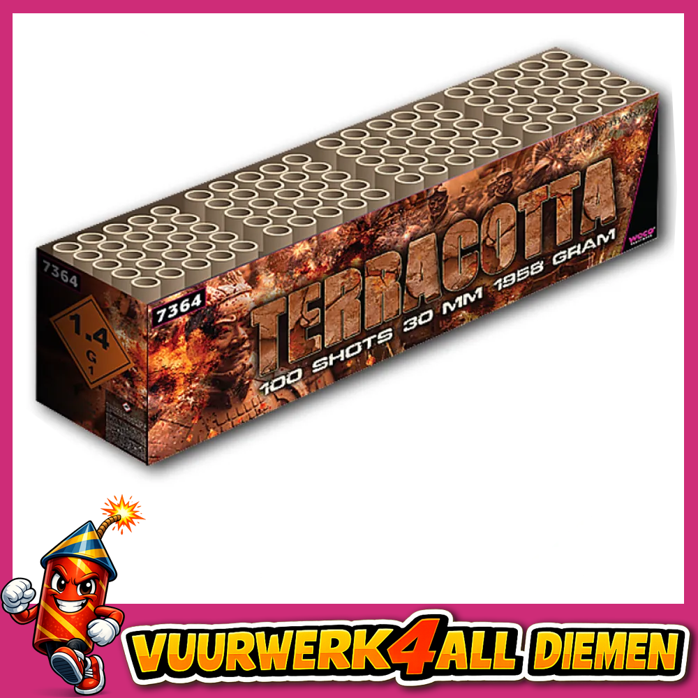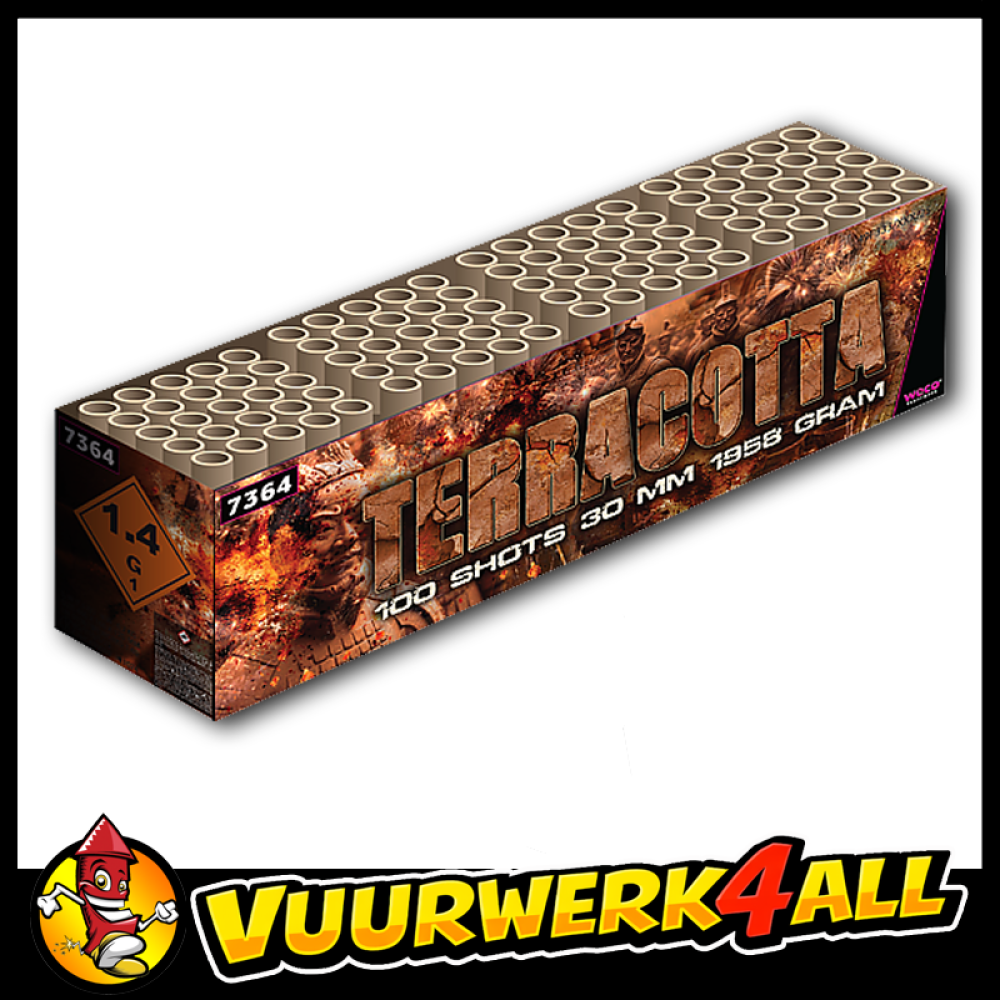 De Terracotta van WECO is een 100 shots compound met de maximale tubesize van 30mm. Met deze compound is het genieten geblazen. In een heerlijk tempo schiet de Terracotta professionele show gebaseerde kleurrijke effecten ritmisch de hemel in. Spektakel gegarandeerd, adembenemend tot het einde.