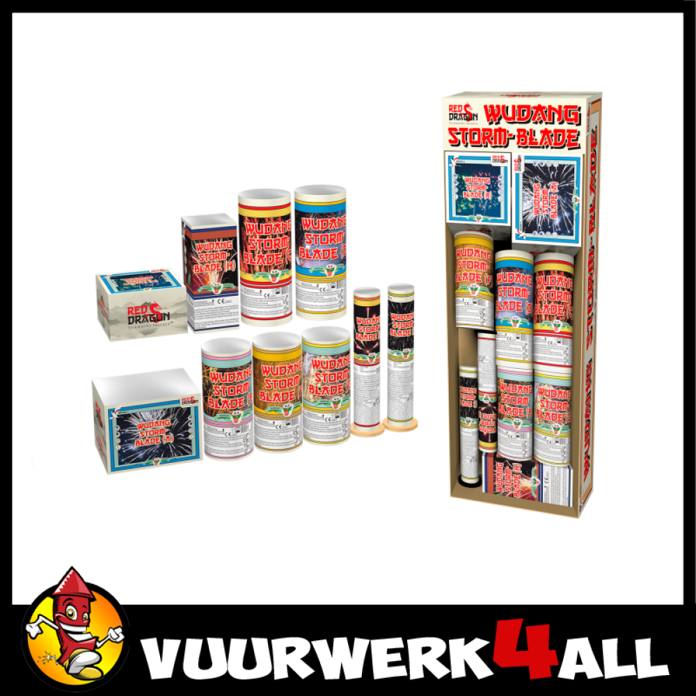 Een Oosterse show vol variatie! De Wudang Stormblade brengt je een complete mix van 5 fonteinen, een vierkante fontein, 2 cakes en 2 mines.
